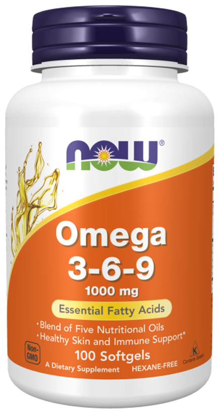 Омега 3-6-9 представляет собой смесь масел семян льна, первоцвета вечернего, канолы, черной смородины и тыквенных семечек. Now сочетает в себе эти известные питательные масла для создания сбалансированных пропорций жирных кислот омега-3, омега-6 и омега-9. Омега-3, альфа-линоленовая кислота (АЛК) и омега-6, ГЛК, играют важную роль в поддержании здоровья кожи и функции иммунной системы. Пищевая олеиновая кислота, мононенасыщенная жирная кислота омега-9, связана со здоровьем сердечно-сосудистой системы.