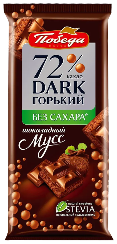 Победа Шоколад без добавления сахара пористый горький 72%, 65 грамм