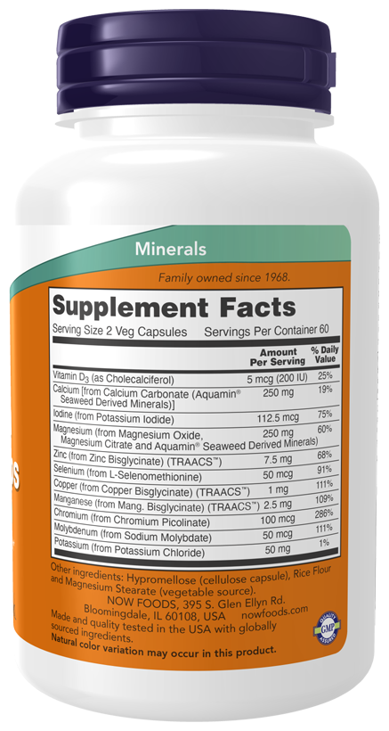 Now Full Spectrum Mineral Caps представляет собой комплексную комбинацию наиболее важных пищевых минералов, используемых организмом.Эта формула содержит рекомендуемые количества необходимых минералов, включая кальций для укрепления костей и зубов и цинк для поддержки иммунной системы.