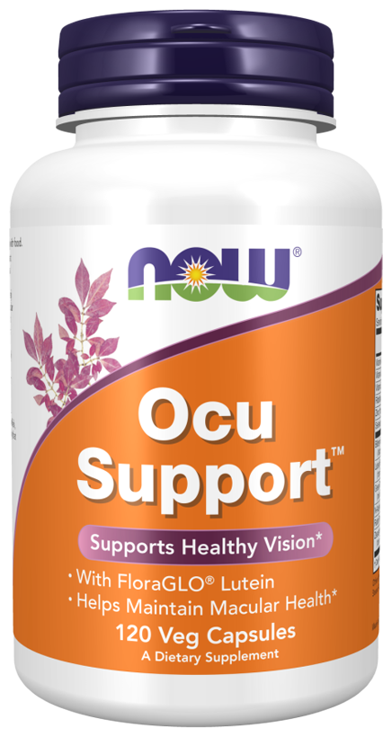 Now Ocu Support содержит полный спектр питательных антиоксидантов, которые способствуют поддержанию нормальной работы органов зрения. Одна ежедневная порция Ocu Support содержит 10 мг лютеина, каротиноида, содержащегося в темно-зеленых листовых овощах. Лютеин - это преобладающий пигмент в макулярной области глаза. Добавка также содержит антиоксидантные витамины A, C и E и вспомогательные питательные вещества, необходимые для нейтрализации свободных радикалов, вырабатываемых под воздействием солнечного света. Кроме того, экстракт черники содержит биологически активные флавоноиды, поддерживающие нормальное зрение.
