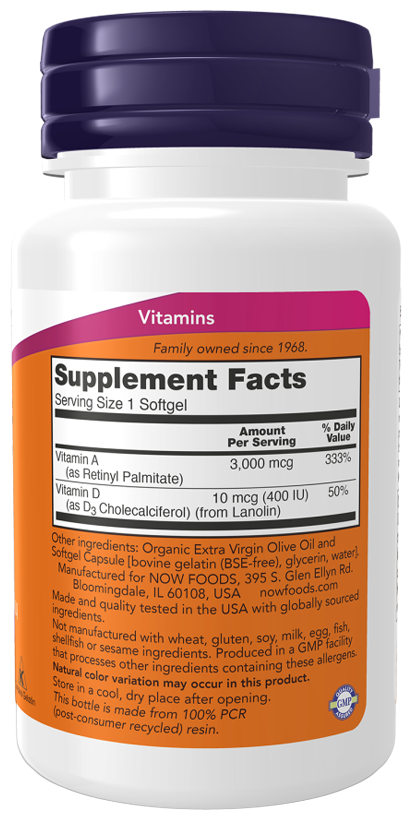 NOW A&D 10000/400 IU, 100 капсул