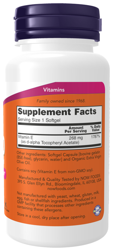 NOW Vitamin E-400 D-Alpha Tocopheryl, 100 капсул
